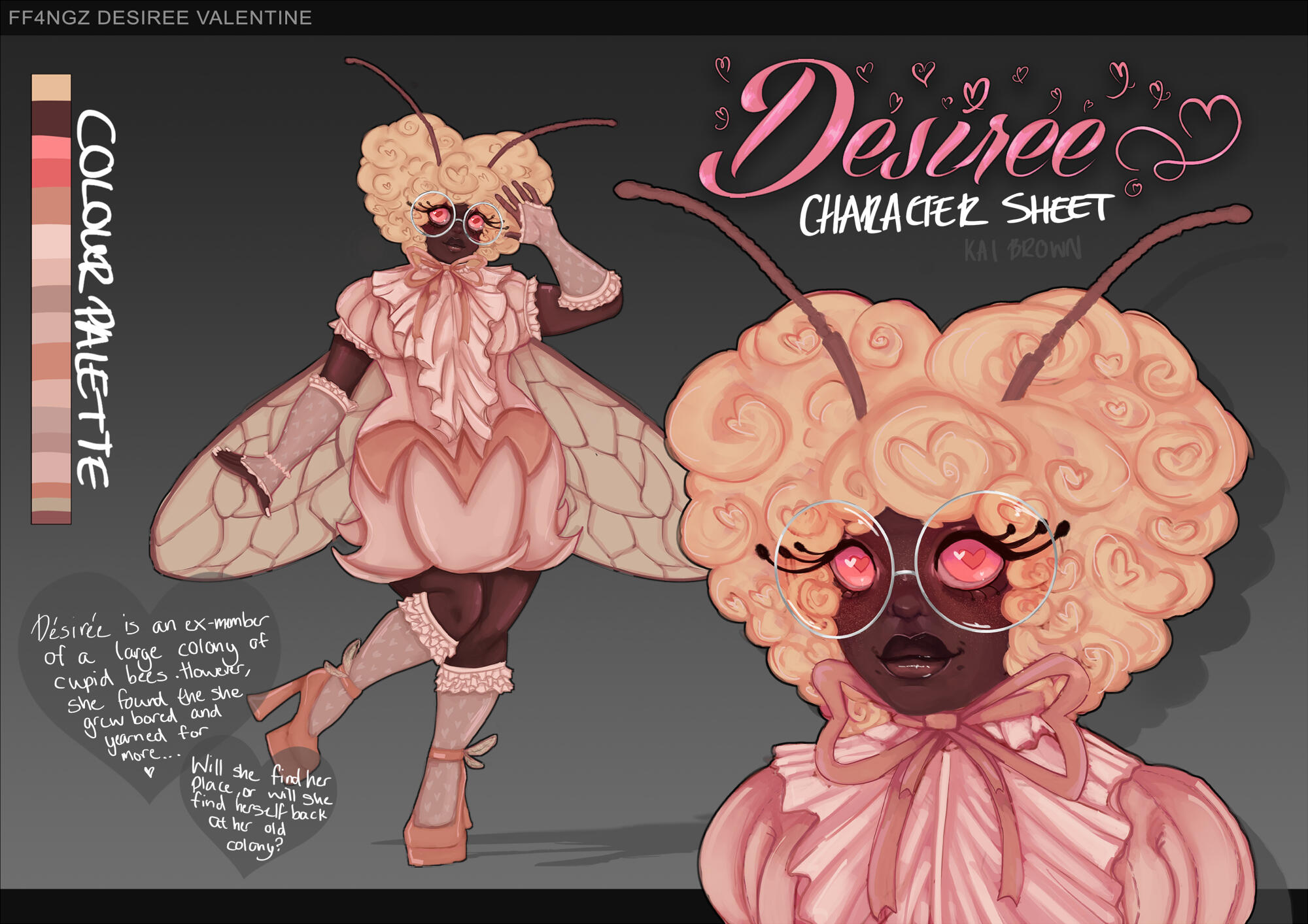 Desiree Valentine is a character who feels as if she doesn't belong where she is, and yearns to be a part of human society. She is inspired by NewJeans' 'Cool With You' music video.