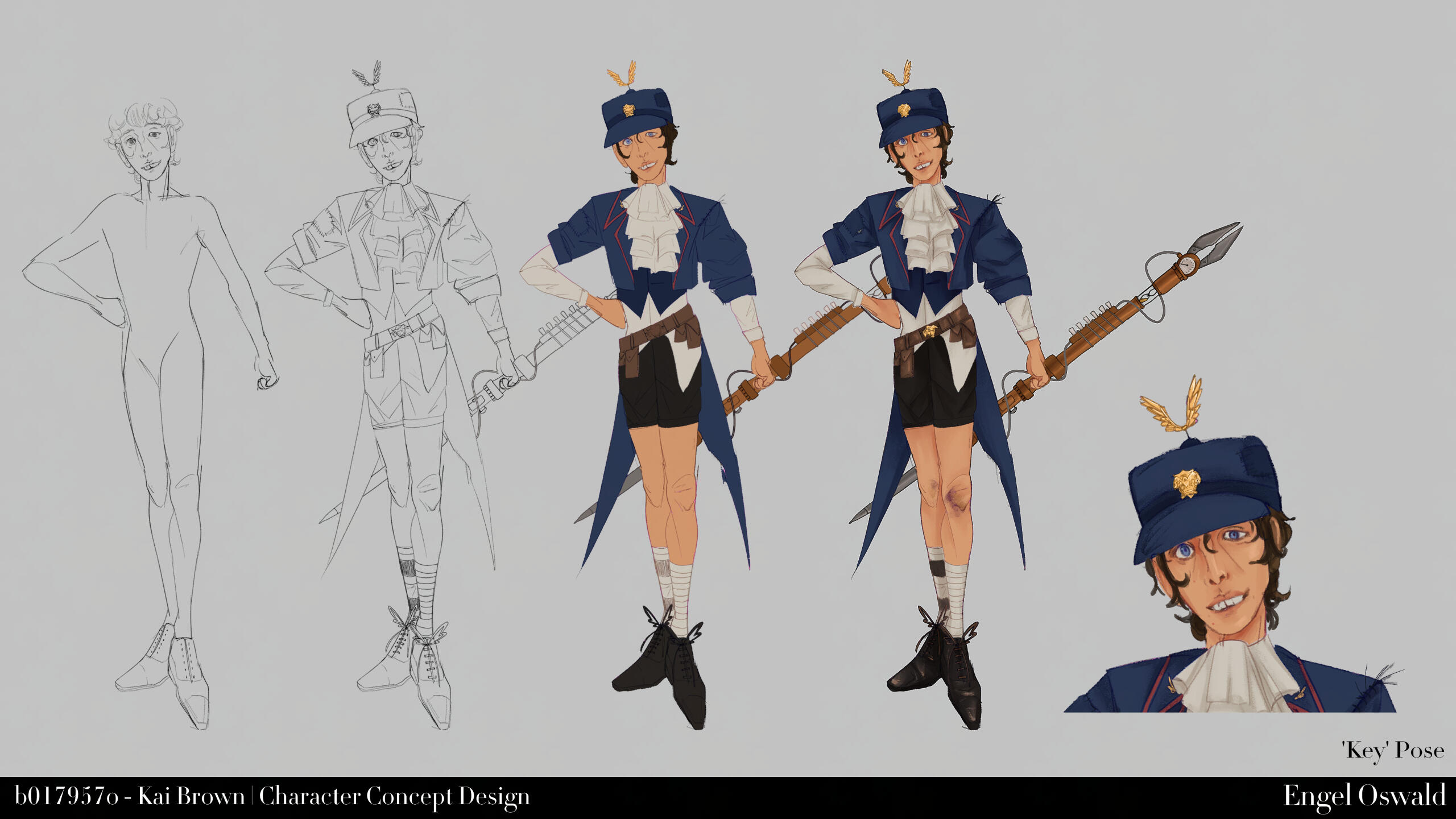 A project that I completed for my Level 4 Character Concept Design module at the University of Staffordshire. I was given a brief that I had to adhere to, while having to stick to a realistic or stylised realism style.Engel Oswald, a young man eager to prove his worth to his father, the Postmaster. He is expected to dedicate himself to the family business and uphold its motto: "Fast as the Future, Precise as the Past". However, this is easier said than done. His obsession with invention often leads to disaster. His ultimate goal? To bring the postal service into the new age - whether the world is ready for it, or not.